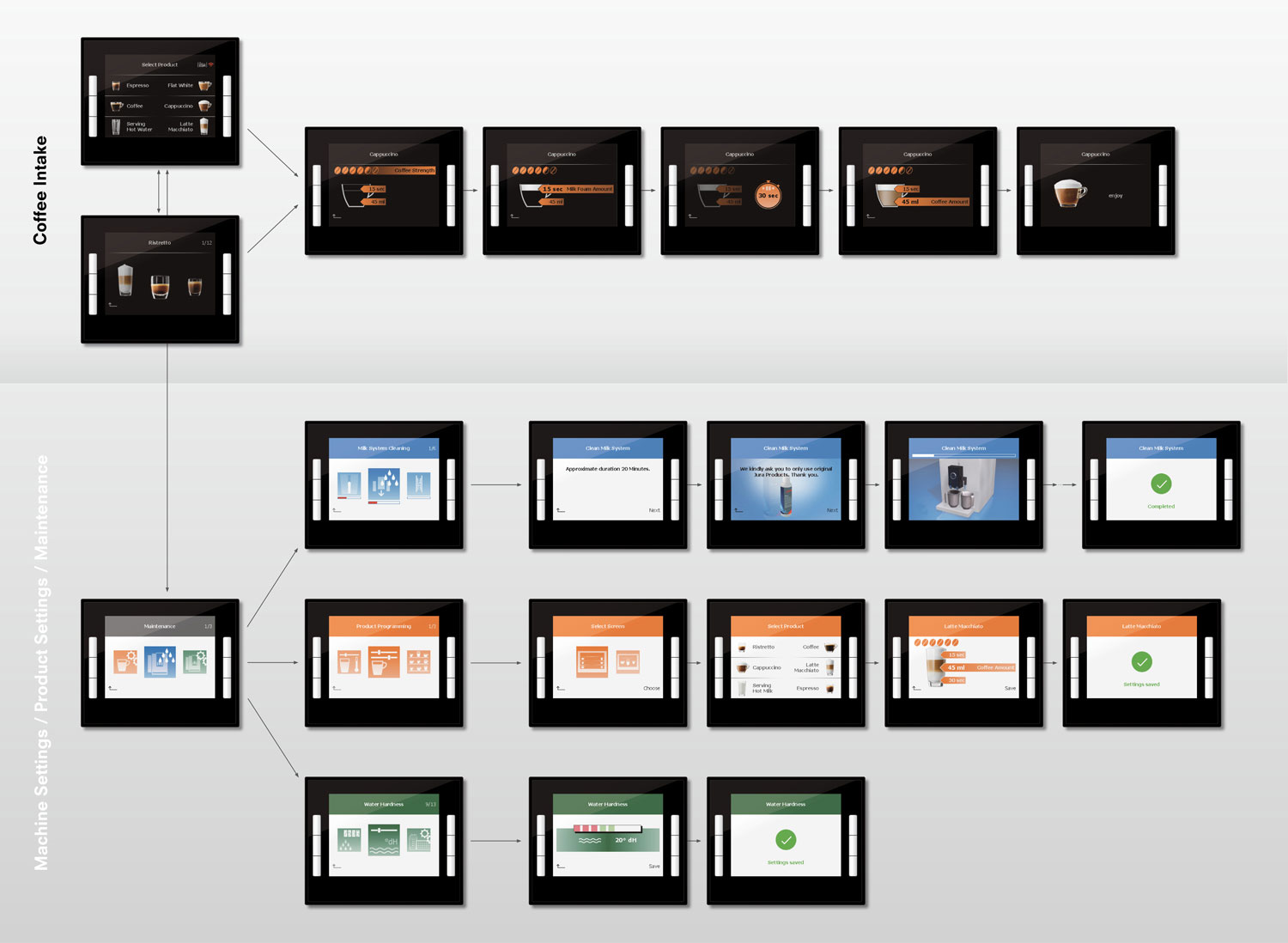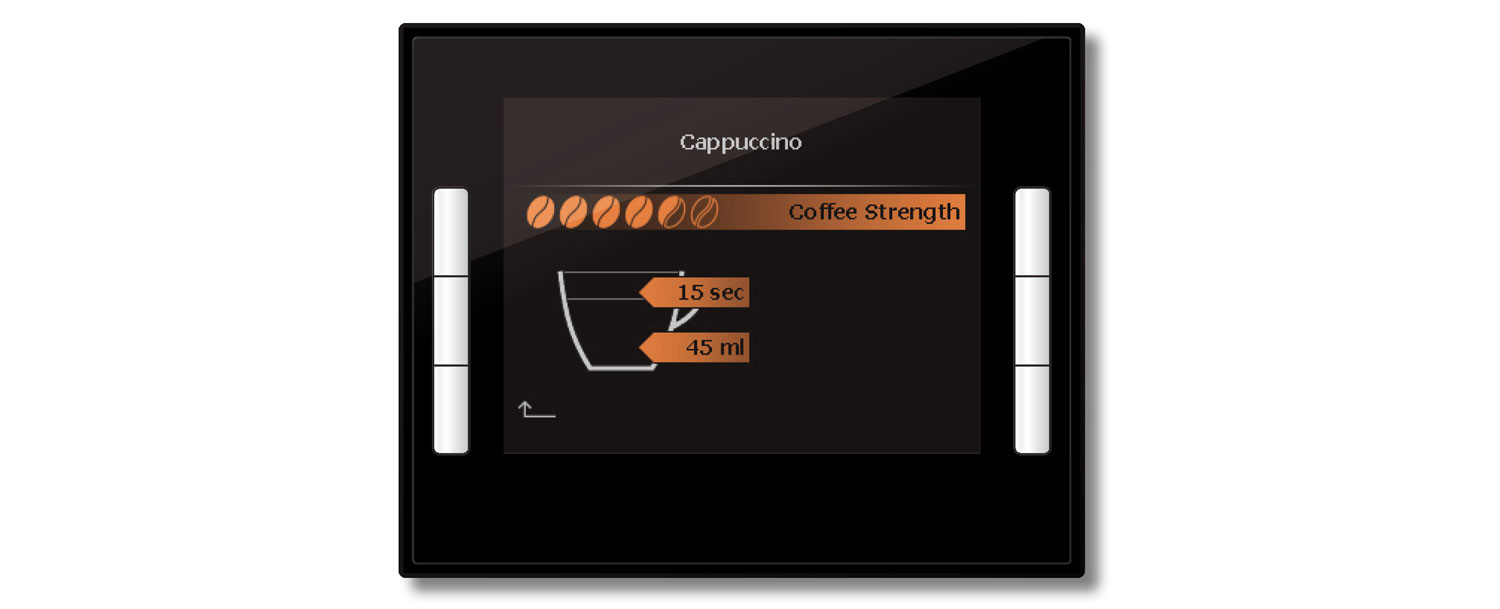 Z6 GUI Im Zentrum der Neuentwicklung stand der Kaffee und die einfache Navigation durch das Drehen und Drücken des Rotary-Switches. Die Navigation zeichnet sich durch einen klaren Aufbau aus. Die unverkennbaren, neu entwickelten Piktogramme und Farbcodes erlauben eine intuitive und ansprechende Bedienerführung.