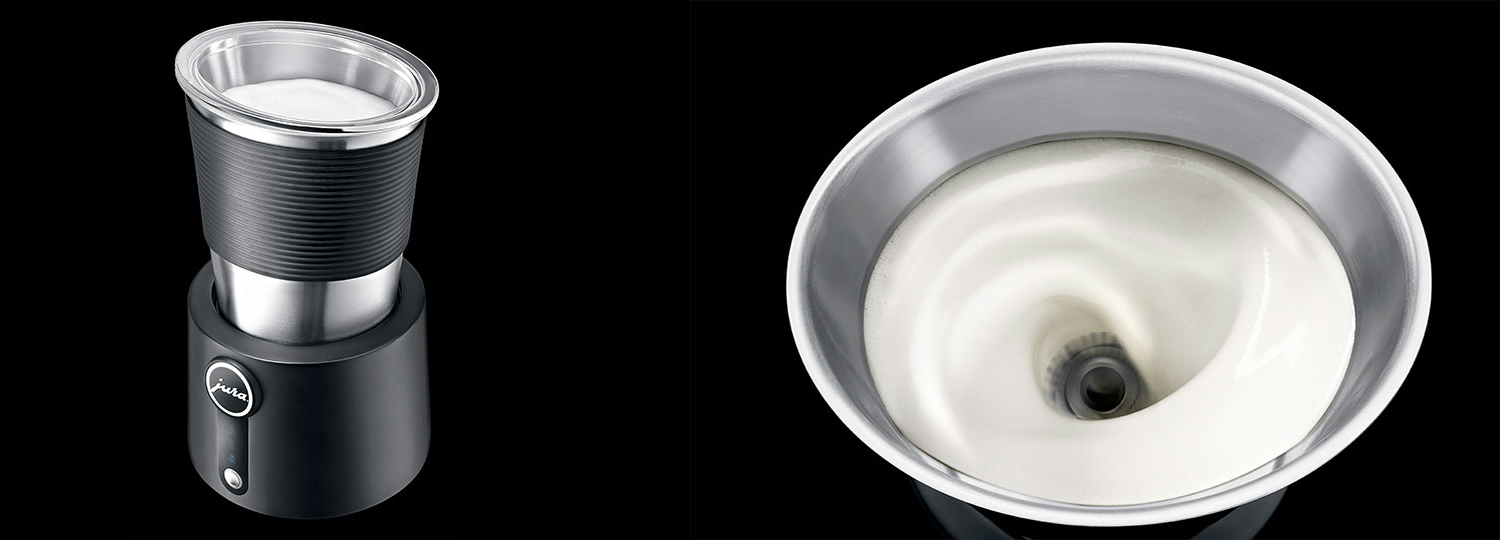 Milk Frother – für den perfekten Milchschaum. Diesen Milchschäumer durften wir für Jura gestalten. Den Milchbehälter formten wir so, dass er von einem kreisrunden Boden in eine elliptische Öffnung übergeht. Dadurch kann auf einen Griff und einen Ausguss verzichtet werden und der Behälter ist handlicher und einfach zu reinigen.